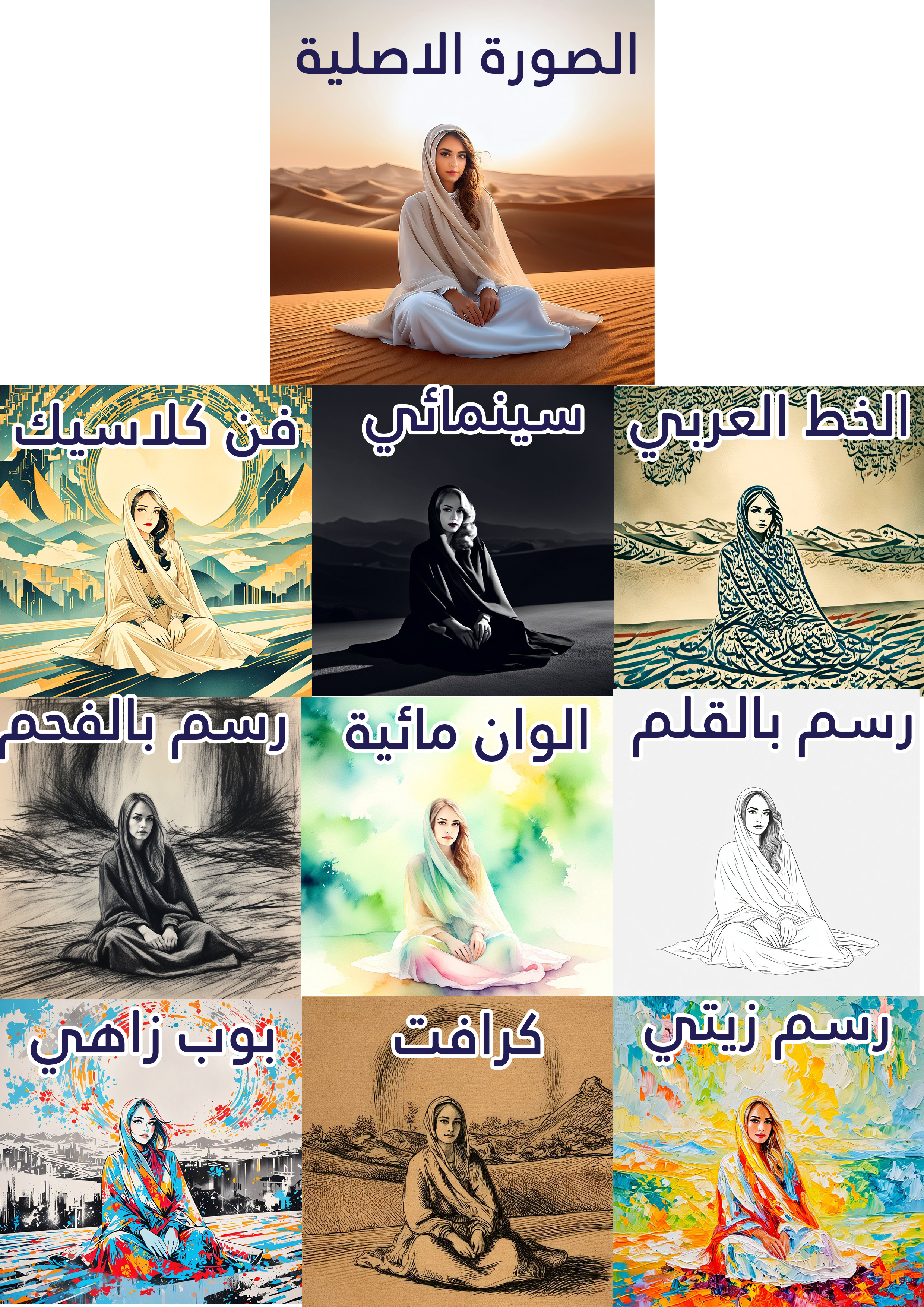 - التخصيص: إمكانية تطبيق تأثيرات فنية متعددة مثل الرسم بالزيت، الأكريليك، الألوان المائية، وغيرها حسب رغبة العميل.
