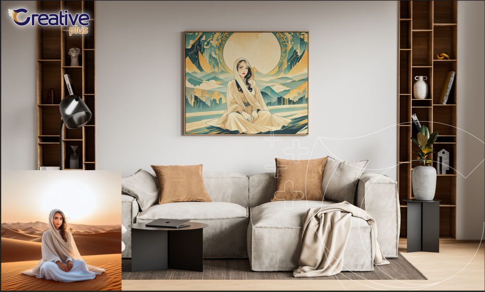 نحن نحول ملامحك إلى لوحة فنية تنبض بالحياة باستخدام أدوات الذكاء الاصطناعي المتقدمة! 🖼️✨ نعتمد على تقنيات متطورة لتحويل صورتك إلى عمل فني رائع يُطبع على قماش الكانفس بجودة عالية. بعد الطباعة، نقوم بشد القماش على إطار خشبي متين، ومن ثم نضيف اللمسة الأخيرة بإطار فاخر من اختيارك، ليصبح العمل جاهزًا ليزين جدرانك ويُضفي لمسة فنية مميزة على أي مساحة.
