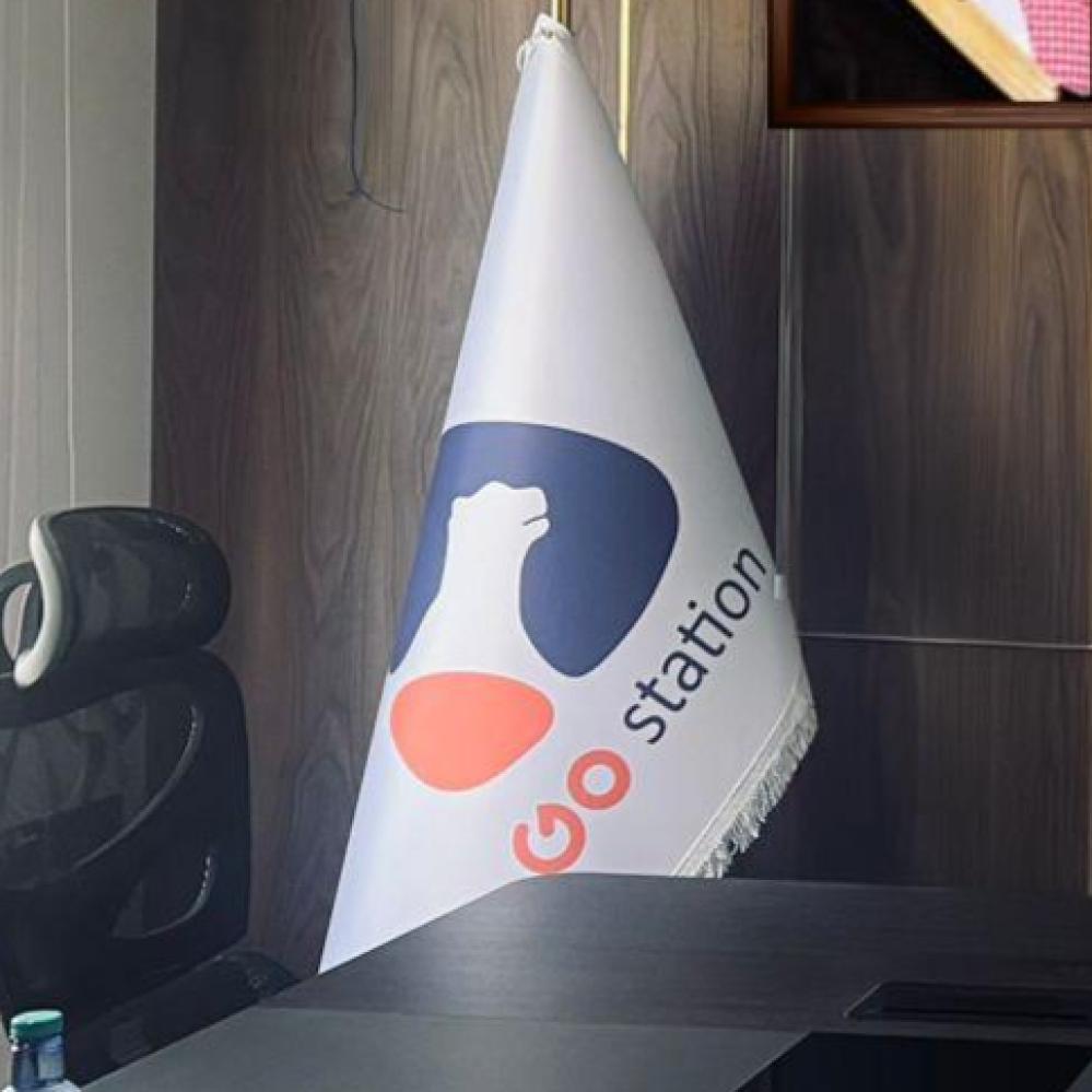 - Company or institution flag, reinforced and printed, with a luxurious pole, 260 cm long, silver or gold