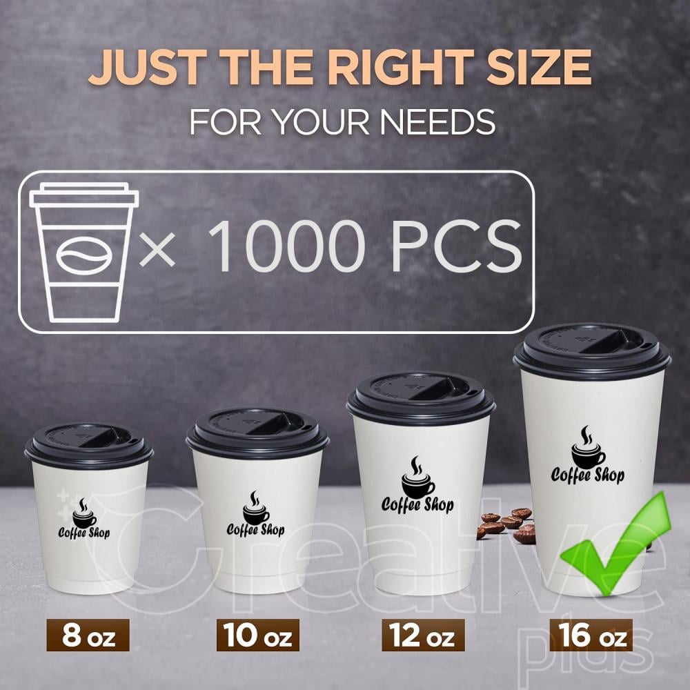16 oz double wall paper cups, white with lid and stylish design. These cups are ideal for hot and cold beverages, providing excellent thermal insulation. Your company logo can be printed in one color on the cups, making them an ideal choice for promoting your brand at events, conferences, and cafes. The cups are available in quantities of 1000, ensuring that your needs are fully met.